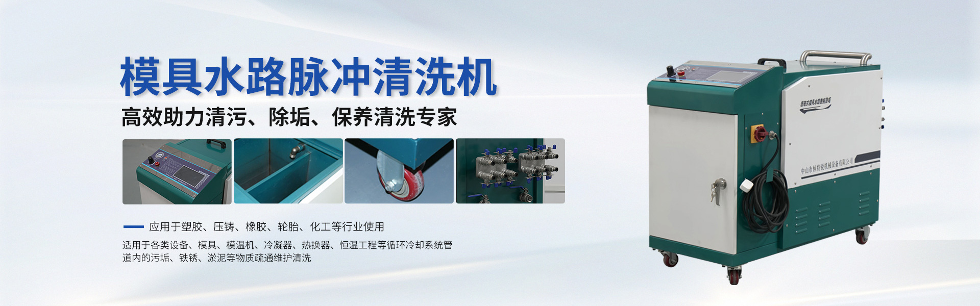 恒特锐机械设备有限公司成立于2022年,是集研发、生产、销售为一体的工业清洗设备企业,拥有严谨高效的制造运营体系和完善的质量控制保障体系,为客户提供全方位的各种自动化清洗设备解决方案,我们一直秉承“创新技术,品质服务”的经营理念;通过不断的设计应用创新,提供高品质、安全高效的设备及服务,竭诚与您双赢合作。广泛应用于生产铸造、汽车船舰、食品医疗、铁路化工等多个领域,随着全球对环境保护意识的增强,公司的产品因其环保特性而受到市场的青睐。公司主要生产设备有模具水路脉冲清洗机,智能流体综合检测清洗机,冷热水高压蒸汽清洗机,智能高压泡沫蒸汽清洗机,旋转式蒸汽喷淋清洗机,输送带网链油污自动清洗机,隧道式高压喷淋自动清洗机,干冰清洗机,干冰制造机等设备。